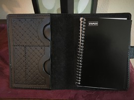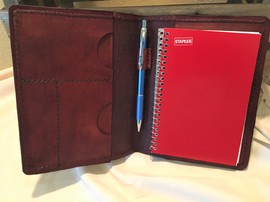 My folios and planners are made to order. I work with my customers to determine the size and style, color scheme and art work desired.