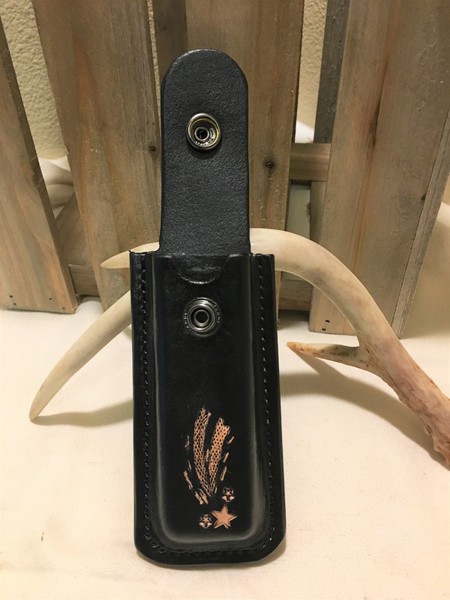 Each custom sheath can be hand saddle-stitched, tooled with unique art work, and dyed to your choice of color.